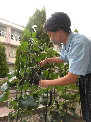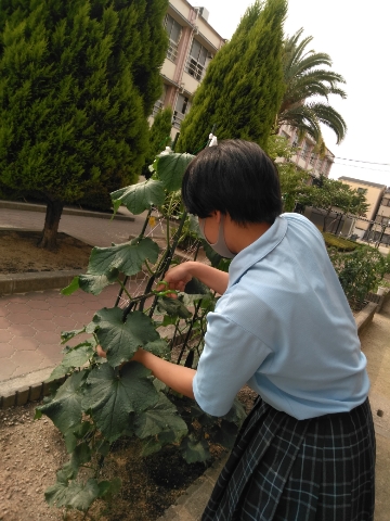 大きなキュウリ。毎朝、水やりをしてくれているお陰です。