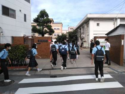 テストのため、ノートや問題集を片手に登校している生徒もいます。