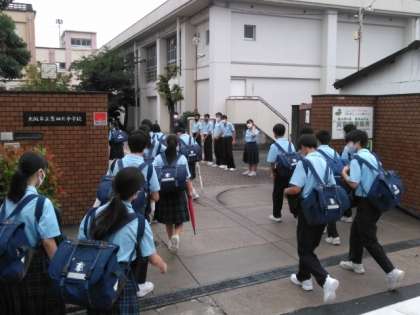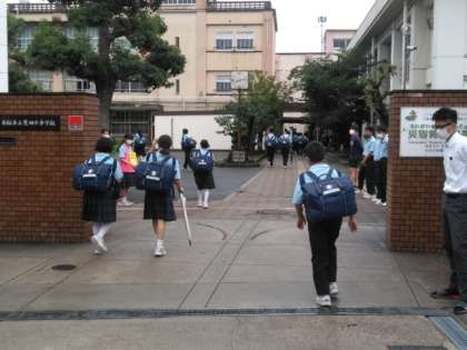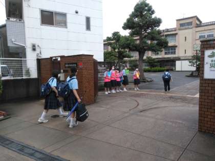 雨がやみ、生徒たちが登校してきました。
