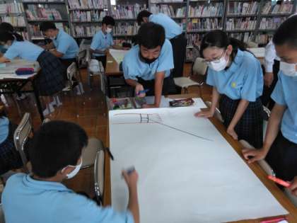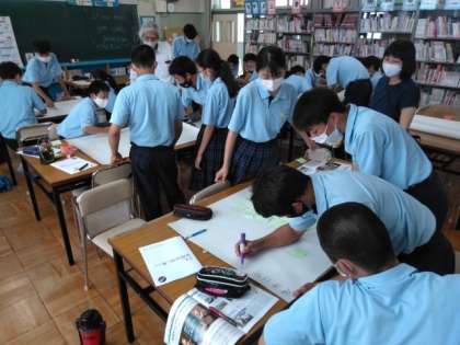 模造紙を囲んで、グループで知恵をしぼっています。