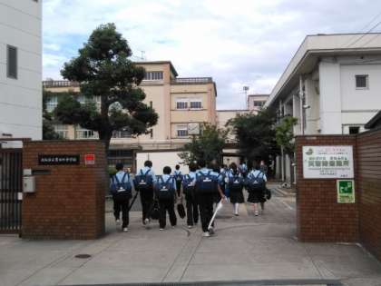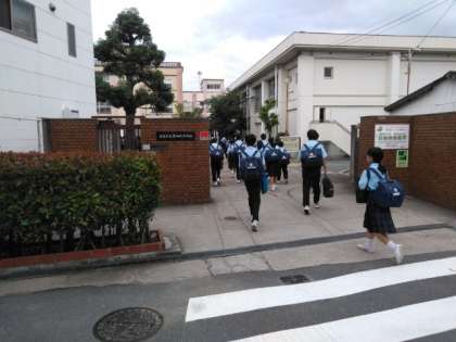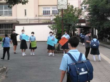 とても蒸し暑い中、生徒たちが元気に登校してきました。