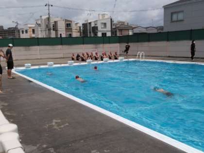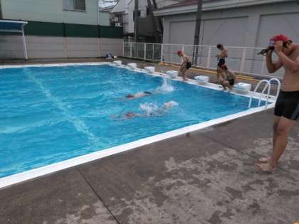 うす曇りで直射日光はなく、蒸し暑さの中、プールのコンディションは良いようです。