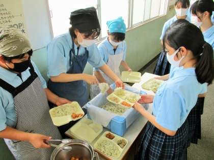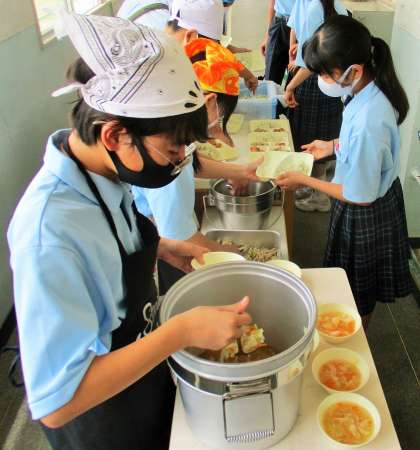 給食の配膳風景です。