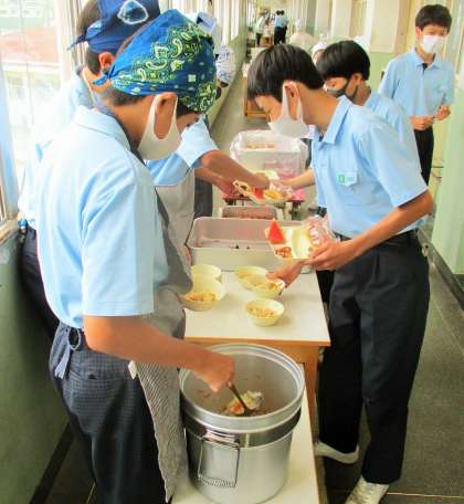 給食の配膳風景です。