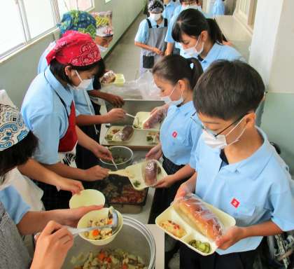 給食の配膳風景です。