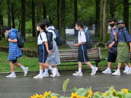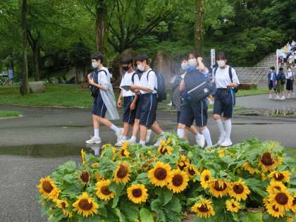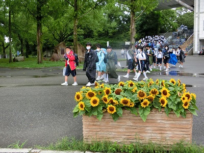 豪雨もカンカン照りも困るところ、少し蒸し暑いですが、みんな元気に出発です。