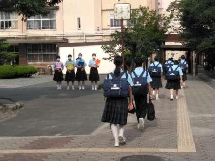 大変蒸し暑い中、児童さん、生徒たちが登校してきました。