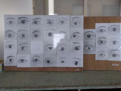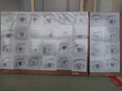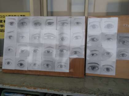 3年生の教室前に、懇談会用として、美術のデッサンが飾られています。