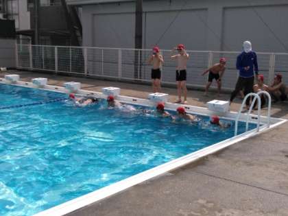この暑さの中、水分補給もしながら、生徒たちは頑張っています。