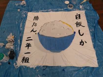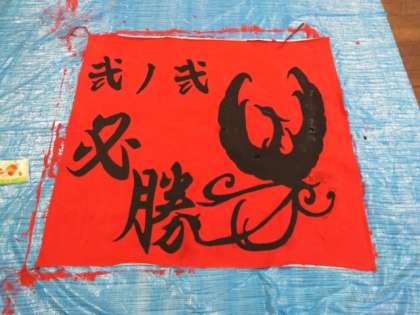 2年生の学級旗の作成が佳境に。