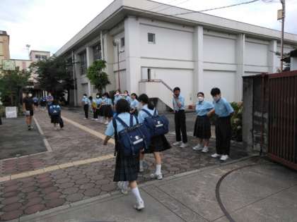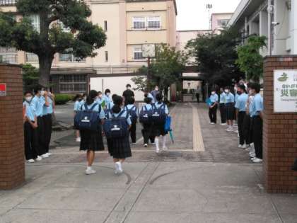 今朝は、生徒会役員、学級代表、各種委員会の委員長らが総出で、あいさつ運動、子ども服のリサイクル運動を展開してくれました。
