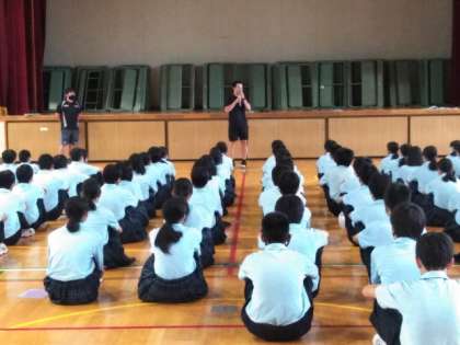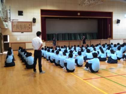 今朝は、集団行動と車内でのマナーについて、お話がありました。