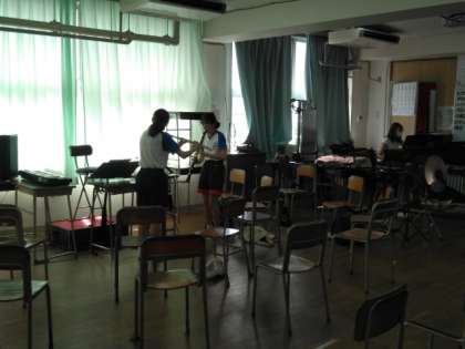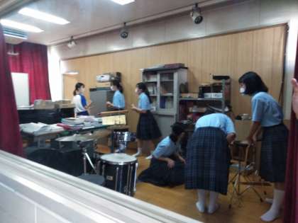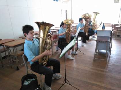 校舎内では、吹奏楽部が練習しています。