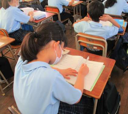 1学期を振り返り「キャリアパスポート」に記入しています。