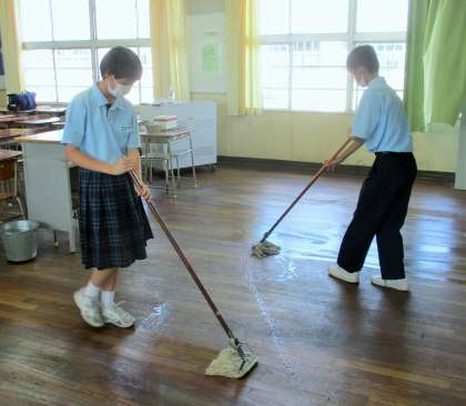 放課後 環境委員を中心に油引きを行いました。