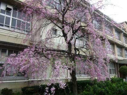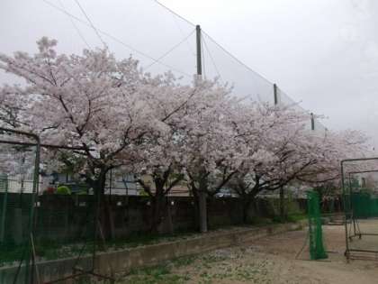 運動場と職員室前 桜の様子です。