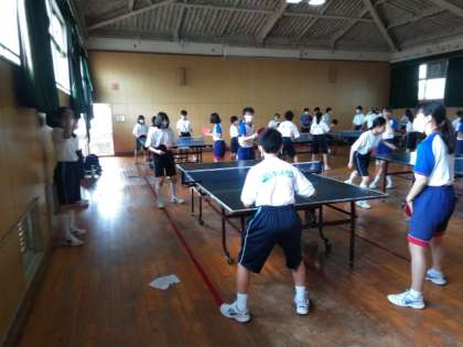 格技室では、卓球部がお盆休みを終えて、練習を再開しました。