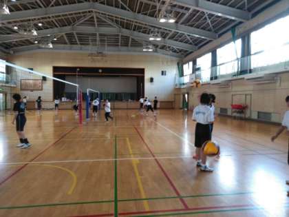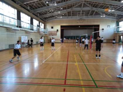 体育館では、女子バレーボール部が練習しています。