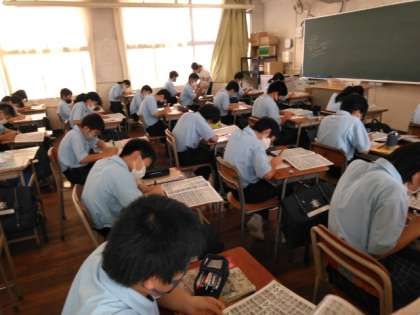美術は、熱帯の美術室を避けて、教室でレタリングの学習です。