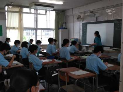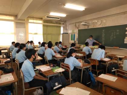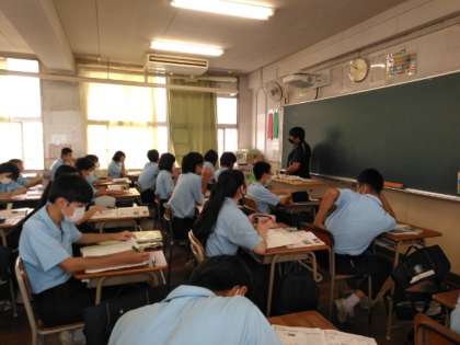 3階の2年の教室は、天井が日に焼けてとくに暑いですが、換気のため窓を開けて頑張っています。