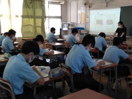 教科書には、おなじみの東京渋谷のスクランブル交差点の写真が・・・。