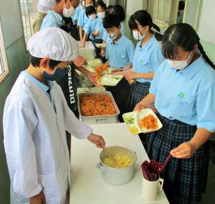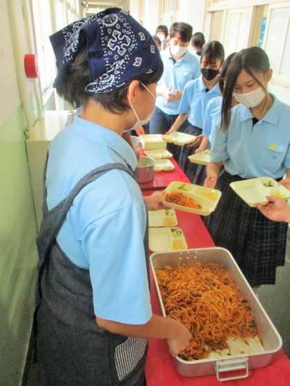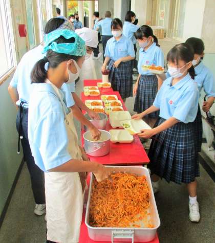 給食の配膳風景です。