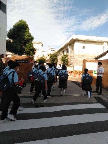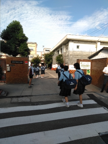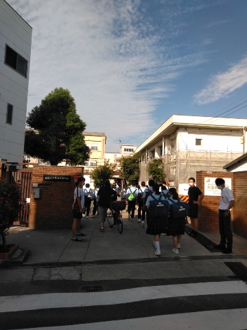 登校時間には暑く、生徒たちは汗をかきながらの通学です。