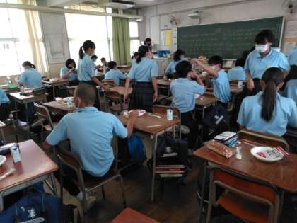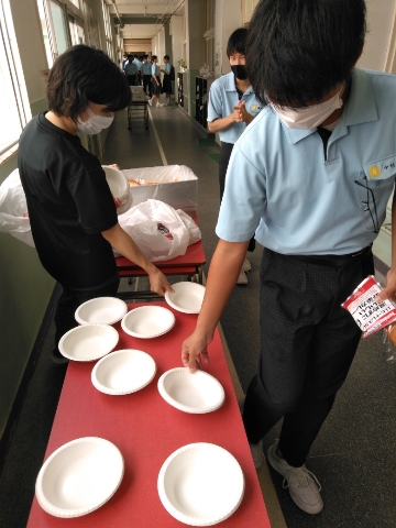 本日3年生は、給食がヒートレスカレーとなりました。