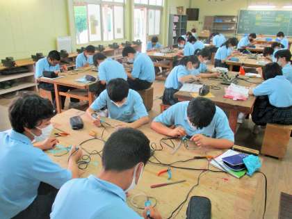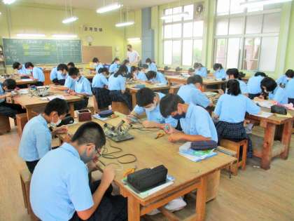 2年生 技術 はんだごて 使い方の練習です。