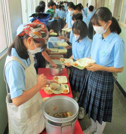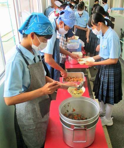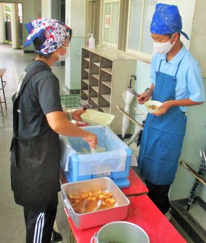 給食の配膳風景です。