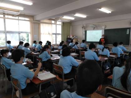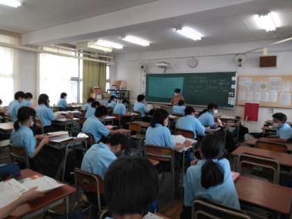 社会、英語の授業です。