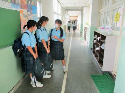 廊下で順番を待っています。