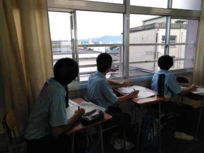教室で居残りの勉強です。