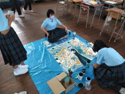 体育大会に向けて、学級旗の作製が佳境に入っています。