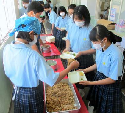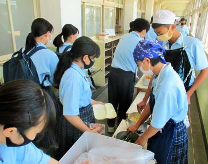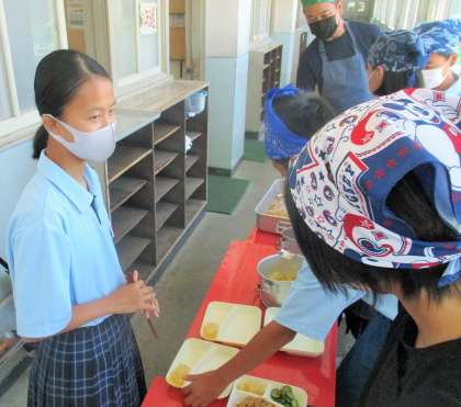給食の配膳風景です。