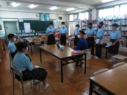 本日、後期生徒会選挙の立候補者の演説会が、リモートで行われました。