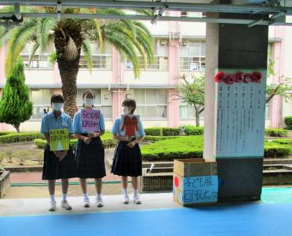 生徒会で継続して、子ども服の回収に取り組んでいます。