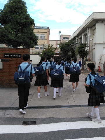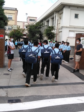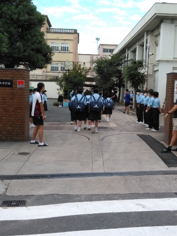爽やかな風の中、児童さん、生徒たちが登校してきました。
