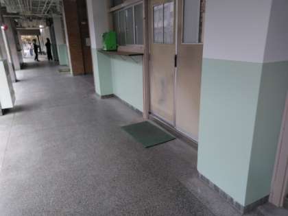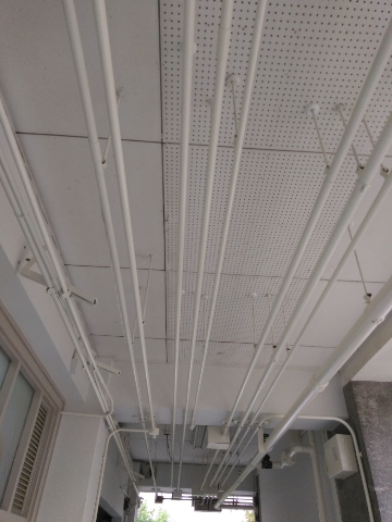 管理作業員さんと力を合わせ、職員室前廊下の天井パイプ、左右の壁をキレイに仕上げてくださいました。