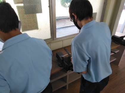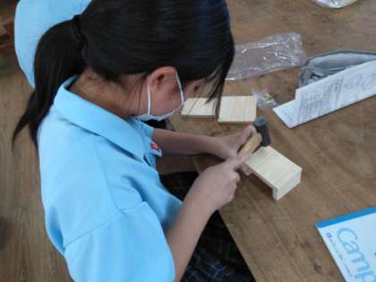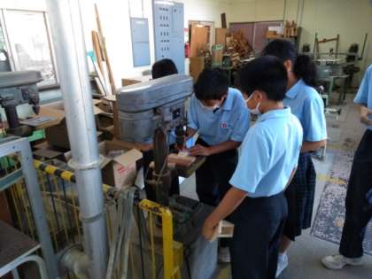 技術室では、木工加工の実習です。