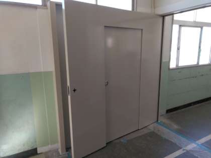 校内で火災が発生した場合に、煙で感知し、自動で閉まる扉。