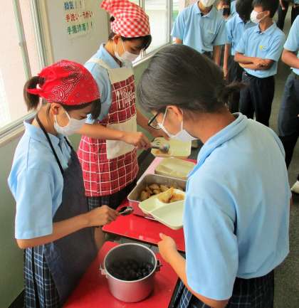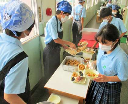 給食の配膳風景です。