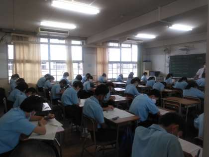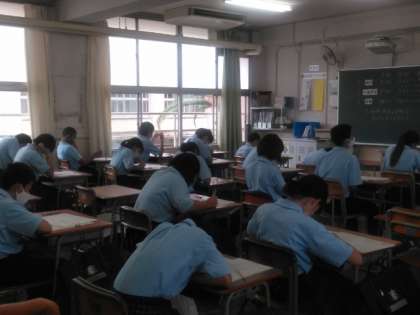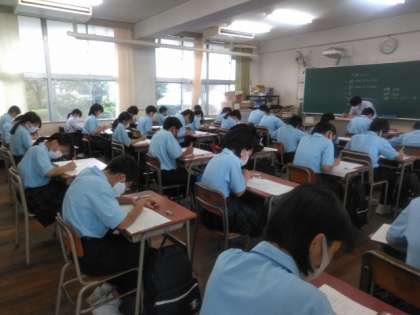 2時間目、1・2年は国語のテスト、3年生は保健体育のテストです。