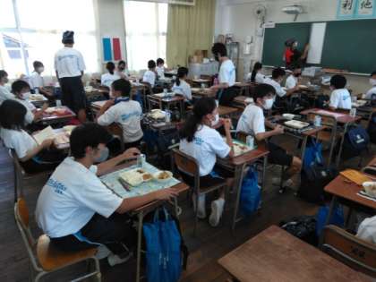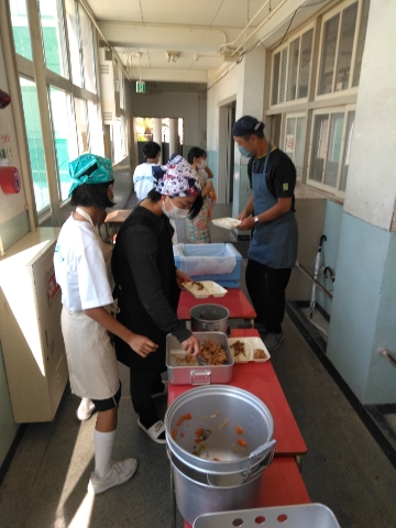 本日のメニューは、「鶏肉の竜田揚げ」「野菜とがんもどきの煮物」「おかか菜っ葉」です。