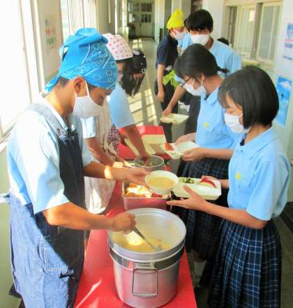 給食の配膳風景です。