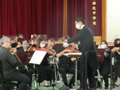本日の午後、体育館で関西フィルのオーケストラ演奏を鑑賞しました。