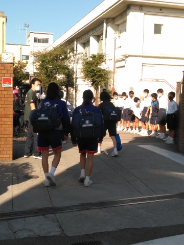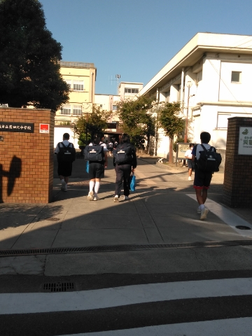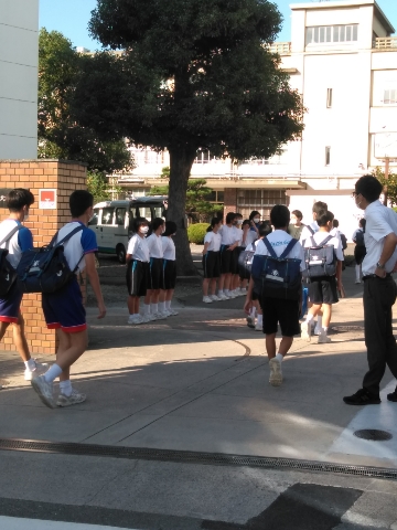 清々しい朝、今日も元気に児童さん、生徒諸君が登校してきました。