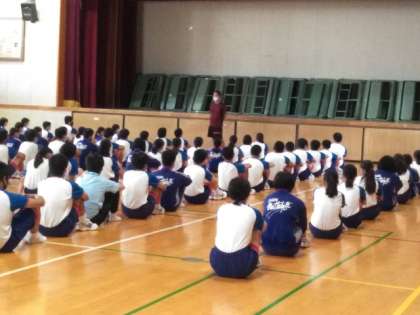 今朝は、明日の体育大会に向けて、3年生の意気込みを見せろと励ましのエールが贈られました。