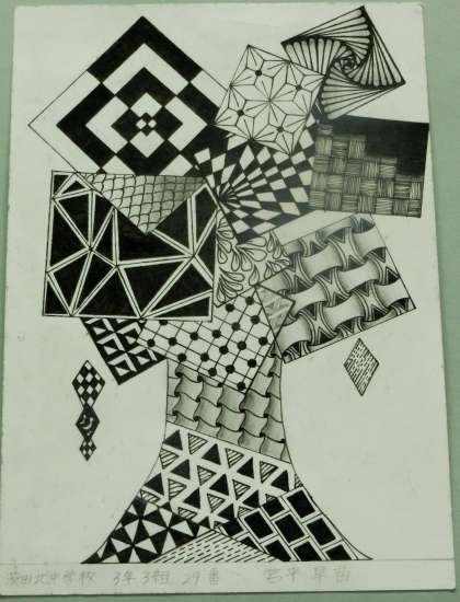 3年生の「ゼンタングル」作品です。