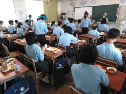 「いただきます」の号令で、給食が始まりました。
